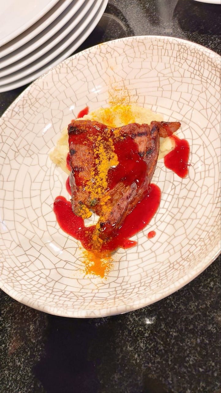 - Блюда из лани с острым соусом и тушеными овощами;