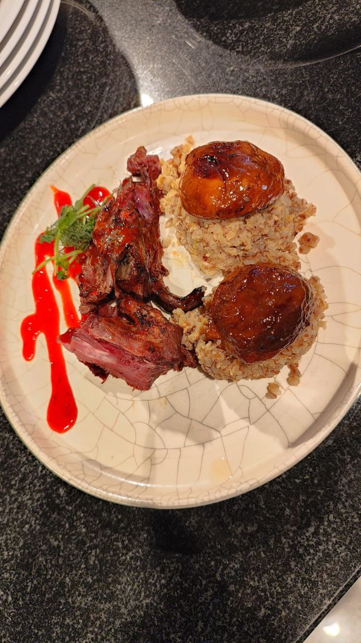 - Блюда из перепелки с овощным хумусом;