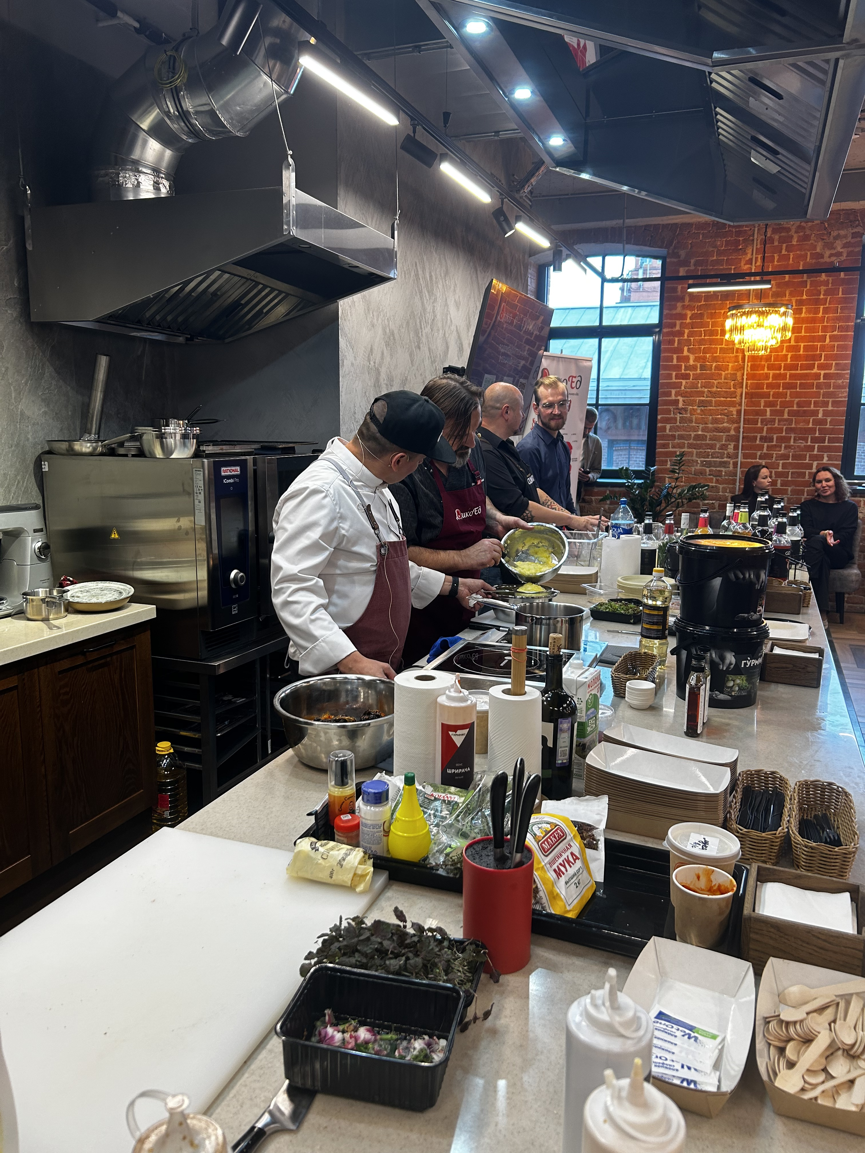 На совместном с главой гильдии шеф-поваров республики Беларусь Александром Чикилевским и Михаилом Колтыгиным мастер-классе участники познакомились с современной славянской кухней и узнали, как адаптировать аутентичные рецепты для своего ресторана.