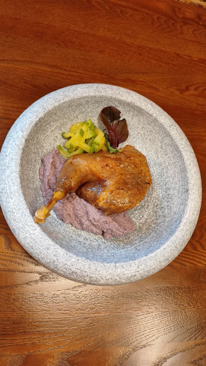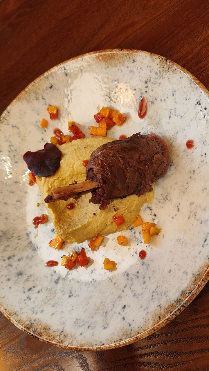 • Окорок бобра, томлённый с сезонными овощами.