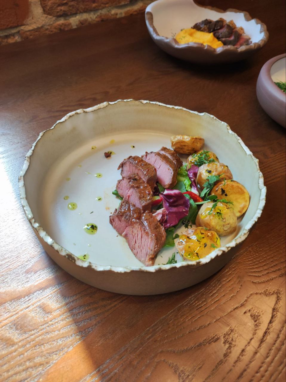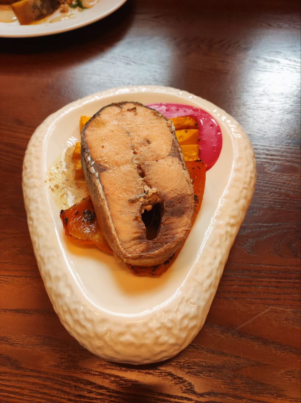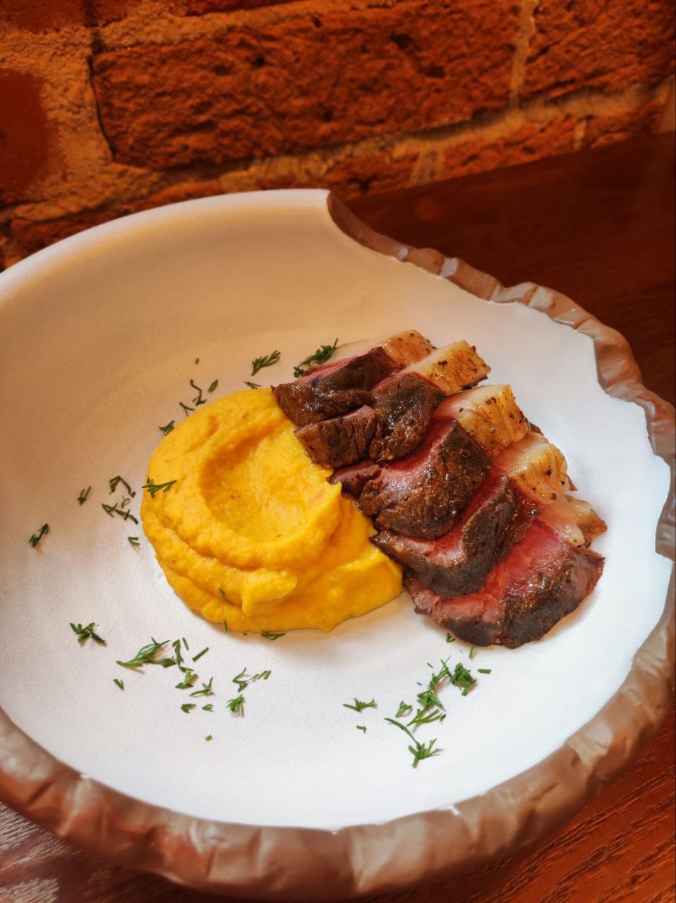 - Корейку медведя без кости с пюре из тыквы;