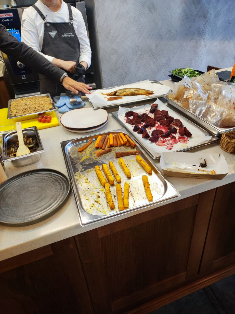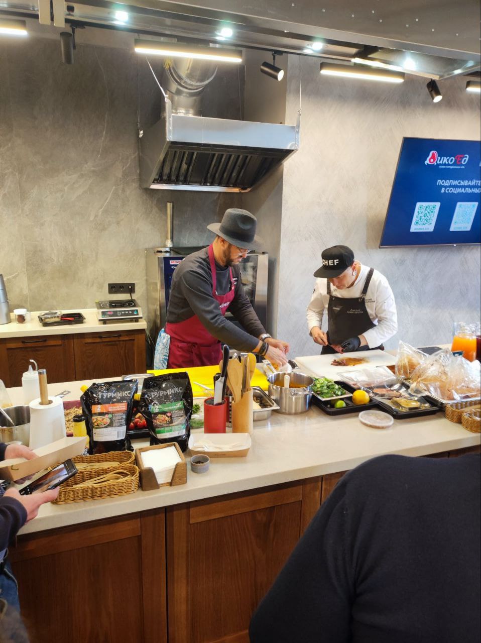 Мастер-класс провели: Бренд шеф повар «Дикоед» Евгений Бердников и бренд шеф Гурмикс Алексей Химандритов.