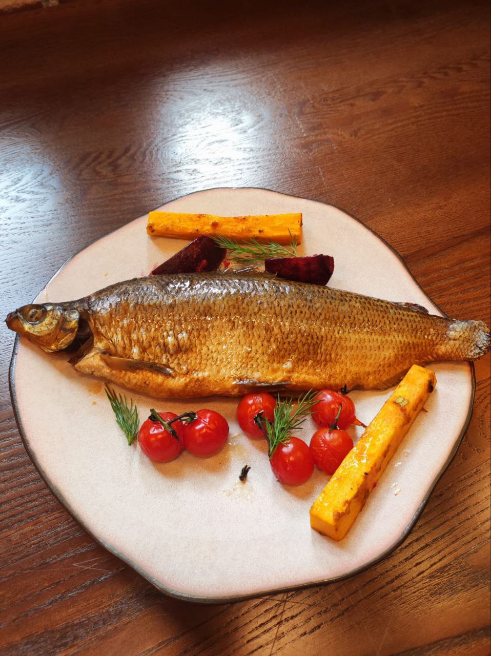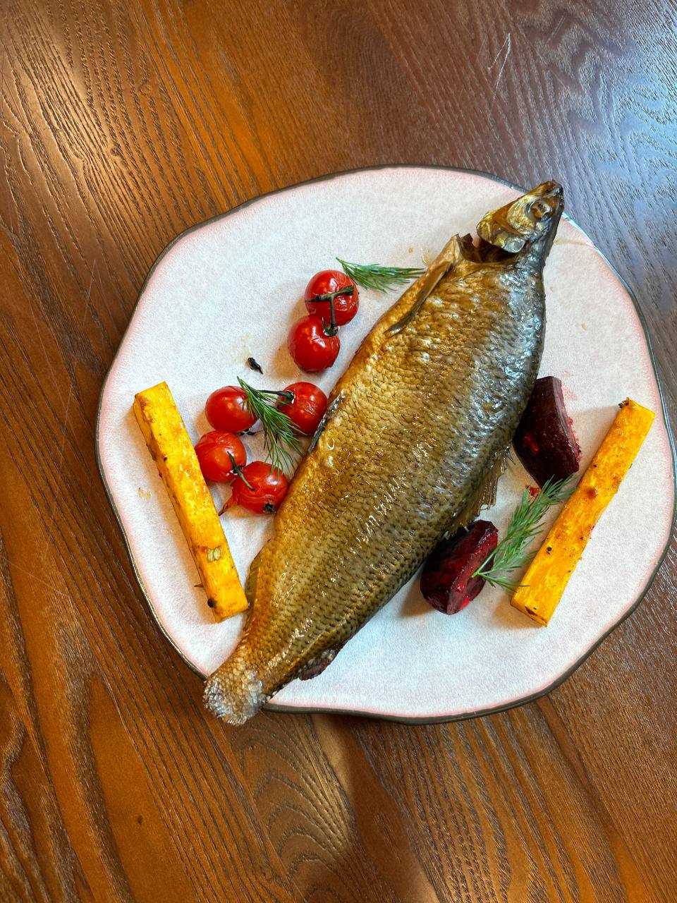 - Осётра с печеными овощами гриль;