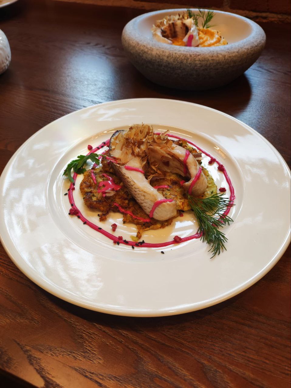 - Муксуна с севиче и овощным хумусом;