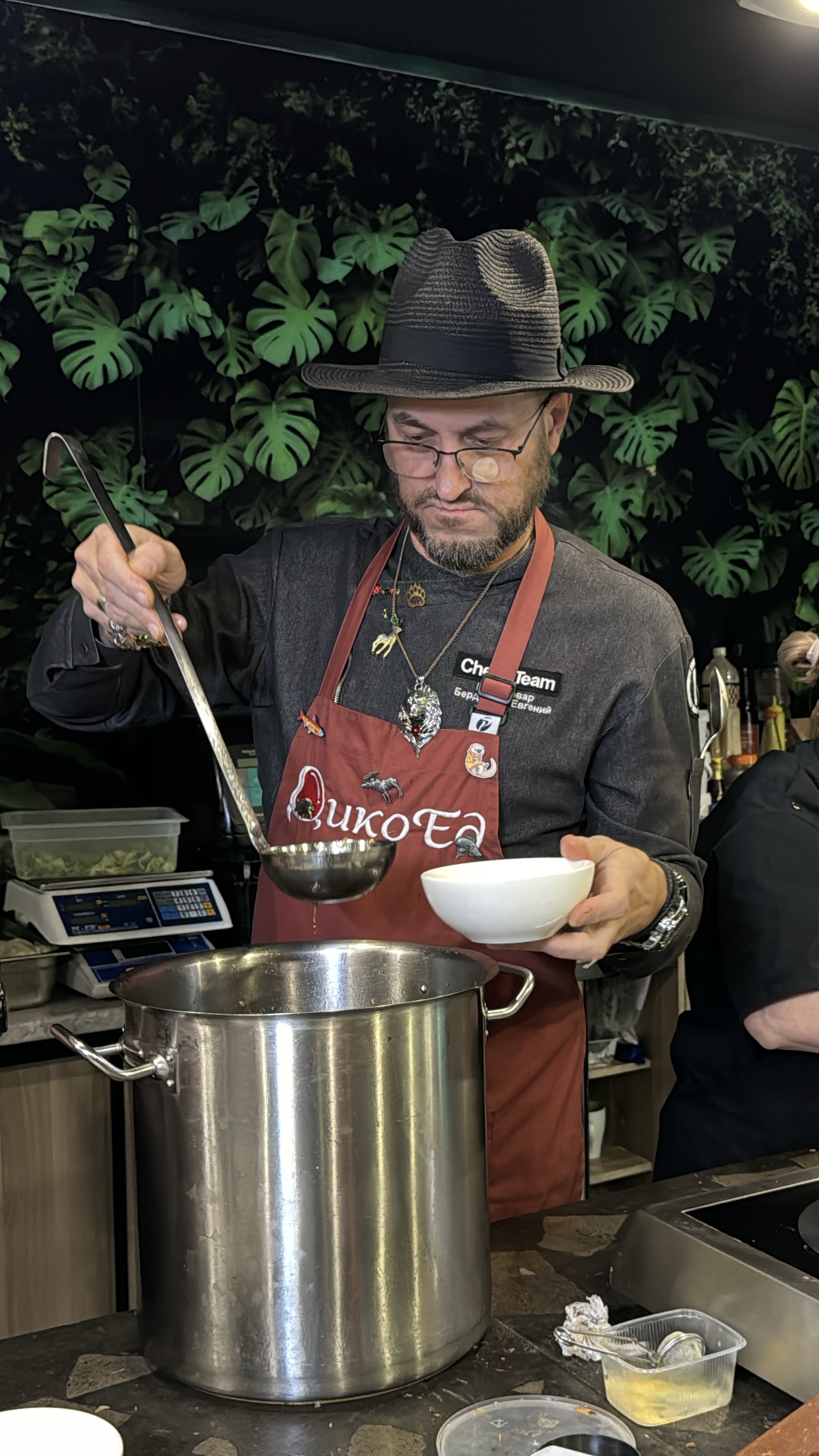 На мероприятии наш шеф готовил дичь, но назвать это мастер-классом мы бы не смогли! Всех участвующих ждало интерактивное музыкальное, световое и игровое шоу о великом походе викингов по пути "из варяг в греки" в Константинополь!