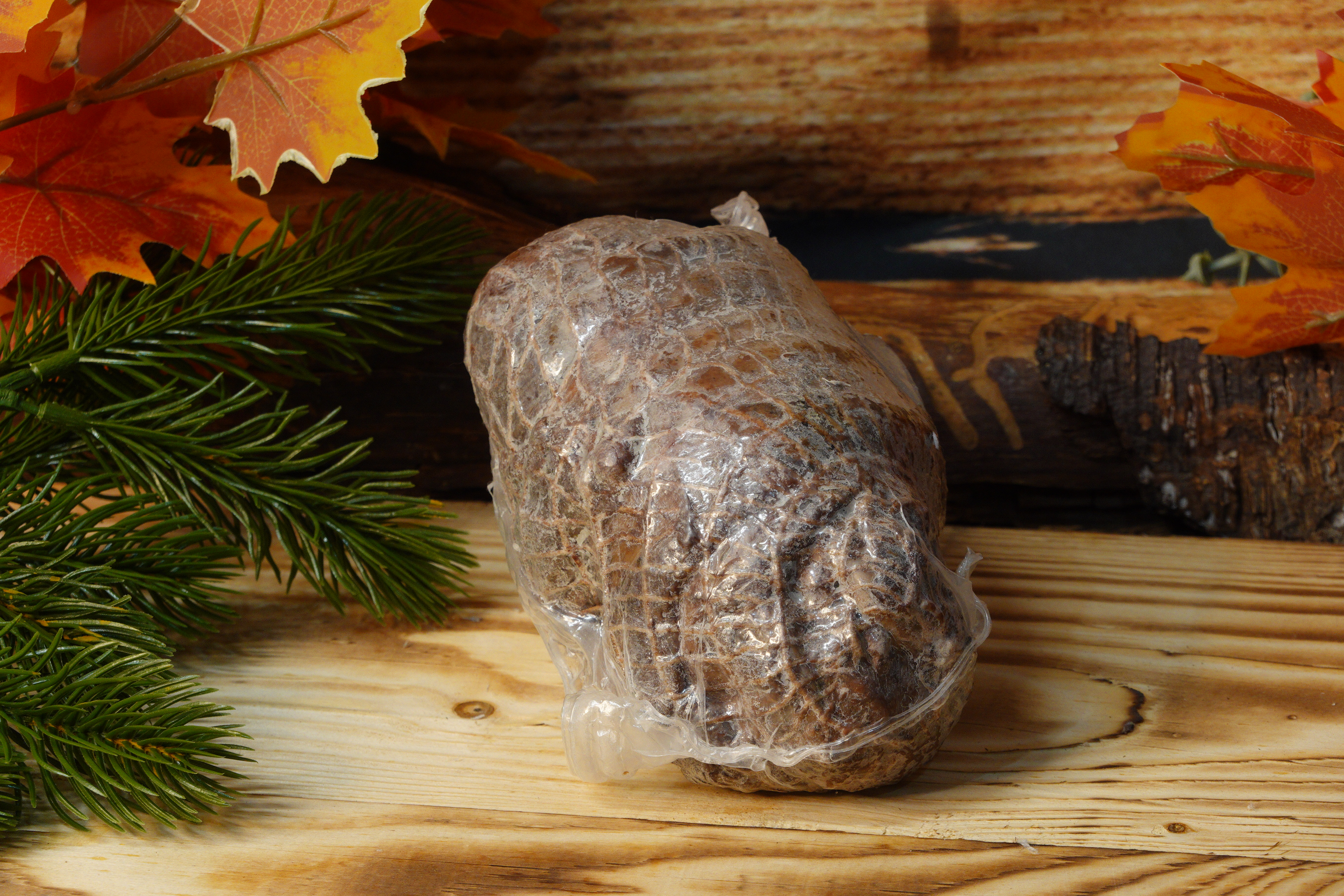 Рулет из пашины северного оленя – настоящий деликатес, который не оставит в стороне даже самых искушенных ценителей вкусной кухни. Это натуральный продукт, приготовленный из пашины северного оленя, специй, посолочной смеси, черного молотого перца. Рулет приготовлен из плотного мяса дичи, из сочного, лишенного жира и костей отруба. Это низкокалорийный продукт, который относится к диетическому питанию. Рулет можно использовать в качестве утреннего бутерброда и мясной нарезки на праздничный стол. Также продукт подойдет для полноценного ужина в сочетании с овощами, гречкой, картофельным пюре.